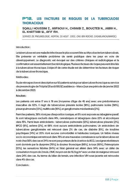 P72. LES FACTEURS DE RISQUES DE LA TUBERCULOSE