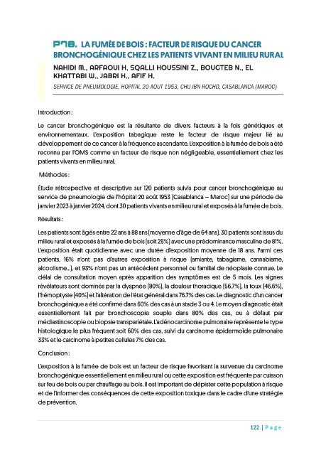 P78. LA FUMÉE DE BOIS : FACTEUR DE RISQUE DU CANCER