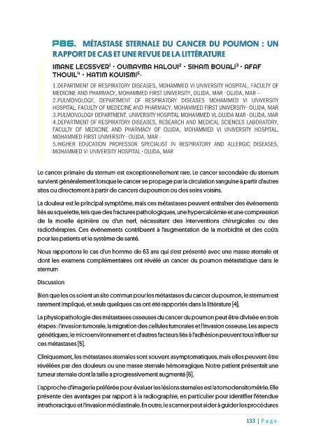 P86. MÉTASTASE STERNALE DU CANCER DU POUMON : UN