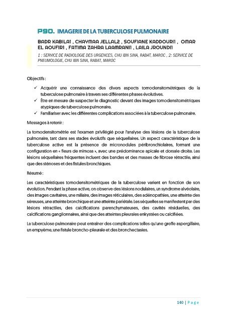 P90. IMAGERIE DE LA TUBERCULOSE PULMONAIRE