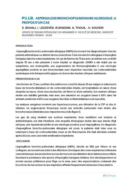 P112. ASPERGILLOSE BRONCHOPULMONAIRE ALLERGIQUE : A