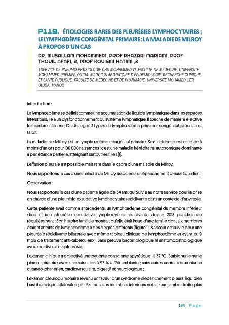 P119. ÉTIOLOGIES RARES DES PLEURÉSIES LYMPHOCYTAIRES ;