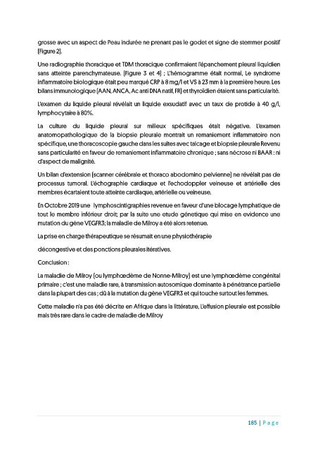 Cette maladie n’a pas été décrite en Afrique dans la littérature, L’effusion pleurale est possible
