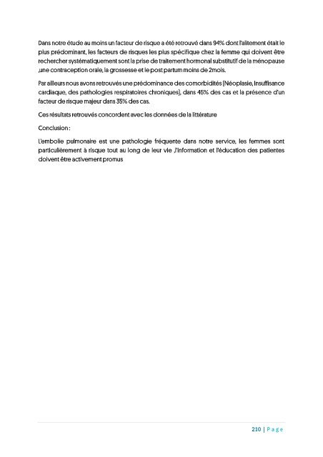 L’embolie pulmonaire est une pathologie fréquente dans notre service, les femmes sont