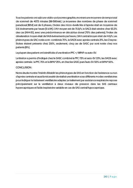 phénotypes de SAC notés sont : combinés 70%, le SAOS avec apnée centrale 21%, les Cheyne-