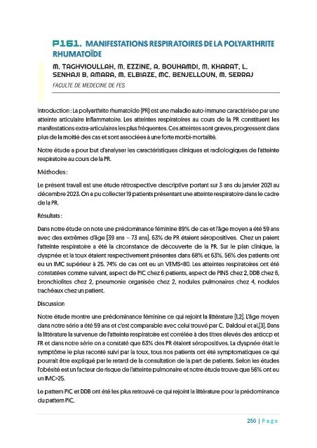 P161. MANIFESTATIONS RESPIRATOIRES DE LA POLYARTHRITE