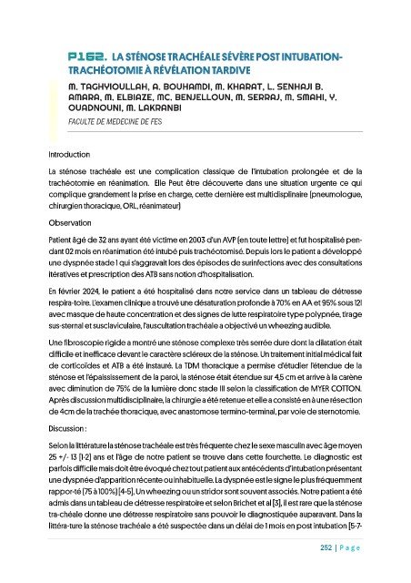 P162. LA STÉNOSE TRACHÉALE SÉVÈRE POST INTUBATION-