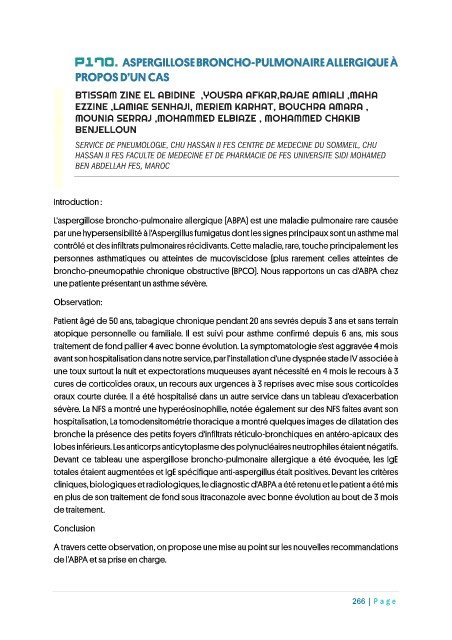 P170. ASPERGILLOSE BRONCHO-PULMONAIRE ALLERGIQUE À
