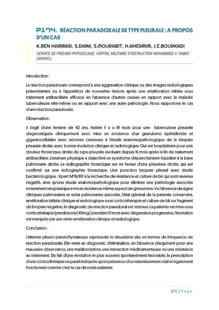 P174. RÉACTION PARADOXALE DE TYPE PLEURALE : A PROPOS