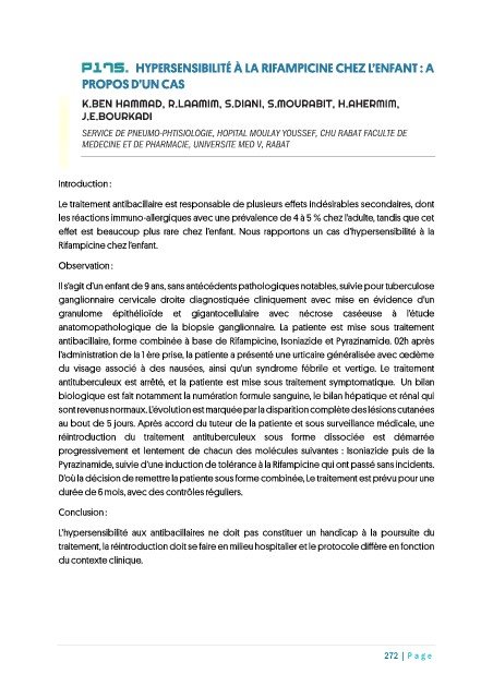 P175. HYPERSENSIBILITÉ À LA RIFAMPICINE CHEZ L’ENFANT : A