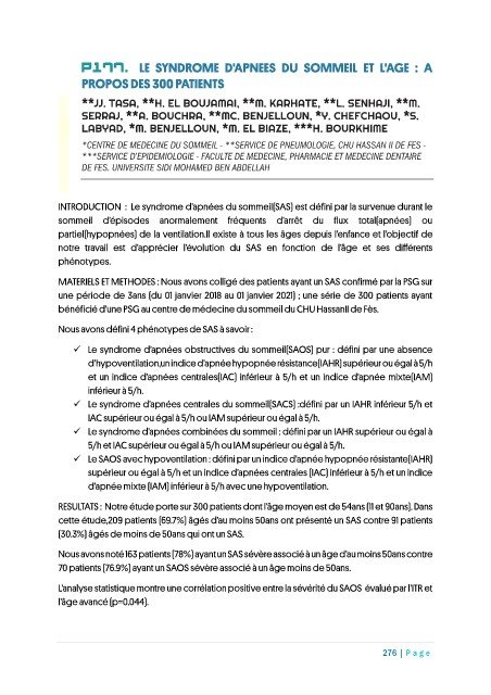 P177. LE SYNDROME D'APNEES DU SOMMEIL ET L'AGE : A
