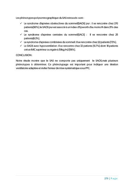Le syndrome d’apnées obstructives du sommeil(SAOS) pur : Il se rencontre chez 270