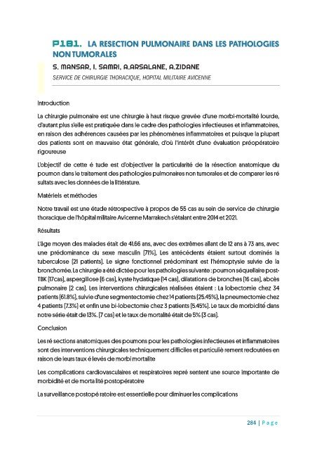 P181. LA RESECTION PULMONAIRE DANS LES PATHOLOGIES