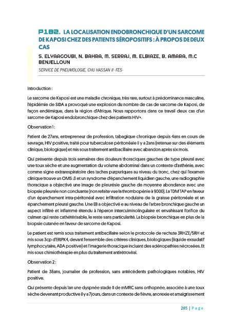 P182. LA LOCALISATION ENDOBRONCHIQUE D'UN SARCOME