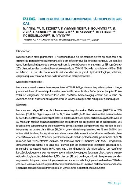 P186. TUBERCULOSE EXTRAPULMONAIRE : À PROPOS DE 393
