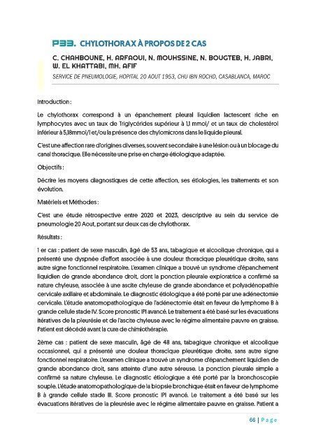 P33. CHYLOTHORAX À PROPOS DE 2 CAS