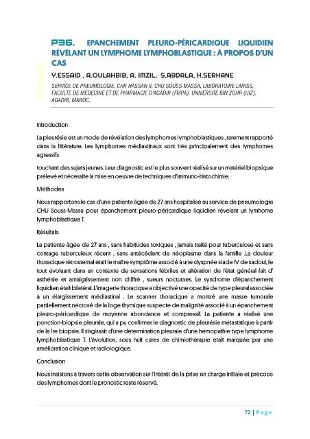 CHU Souss-Massa pour épanchement pleuro-péricardique liquidien révelant un lymhome