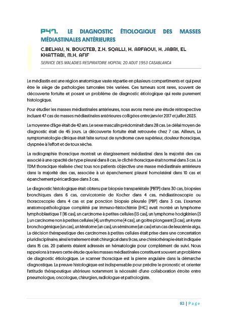 incluant 47 cas de masses médiastinales antérieures colligées entre janvier 2017 et juillet 2023.