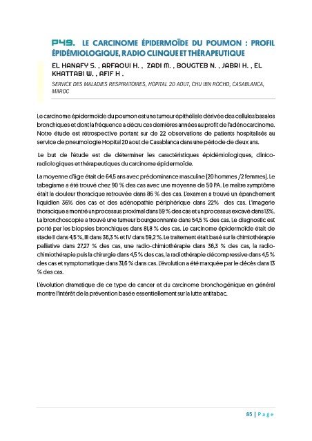 P49. LE CARCINOME ÉPIDERMOÏDE DU POUMON : PROFIL