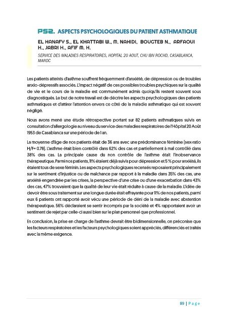 asthmatiques et d’attirer l’attention envers ce côté de la maladie asthmatique qui est souvent